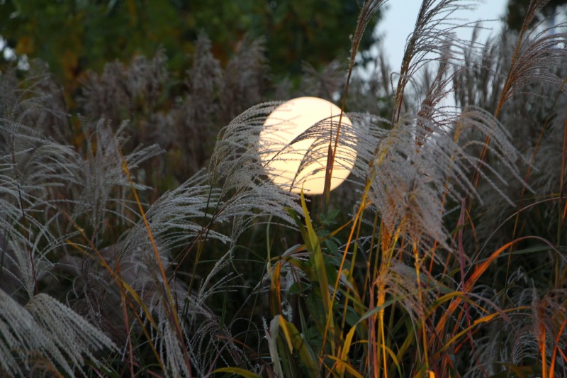 ススキを光らせるのではなく、光を預けるように照らし、柔らかい夜を生んでいるのかもしれません。
