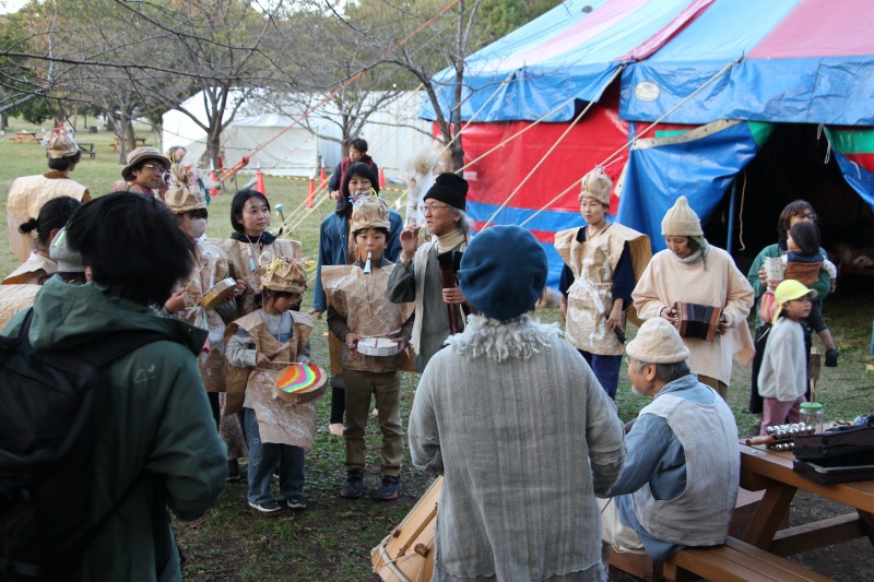 パフォーマンスが行われる「おおきなテント」は、灯りと音が静かに溶け合う場所。ステージを見る、というより「音と同じ空気の中にいる」という感覚に近い時間が流れます。