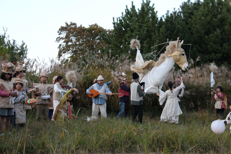 訪れた人がそのまま参加できる「ススキパレード」も開催されます。飛び入り参加OKで、楽団とともに歩きながら一緒に歌っていると、牧歌的な気持ちにさせてくれるのが不思議です。