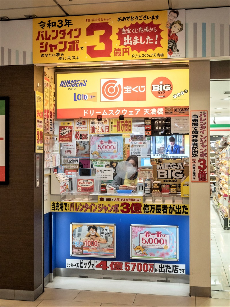 大阪の金運パワースポット「大阪造幣局」の最寄りの売り場。21年・22年連続でバレンタインジャンボ宝くじの1等・前後賞合わせて3億円当せんの奇跡を実現しています。