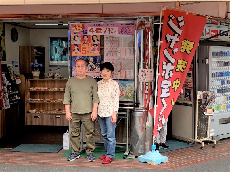 勝ち運で有名な「勝尾寺」の眼下にあり、2016年サマージャンボ宝くじで1等・前後賞合わせて7億円、ロト6で1等9,800万円の実績があります。店頭の勝ちダルマに願いを込めてくじ券をスリスリすると次の幸運を掴み取れるかも。