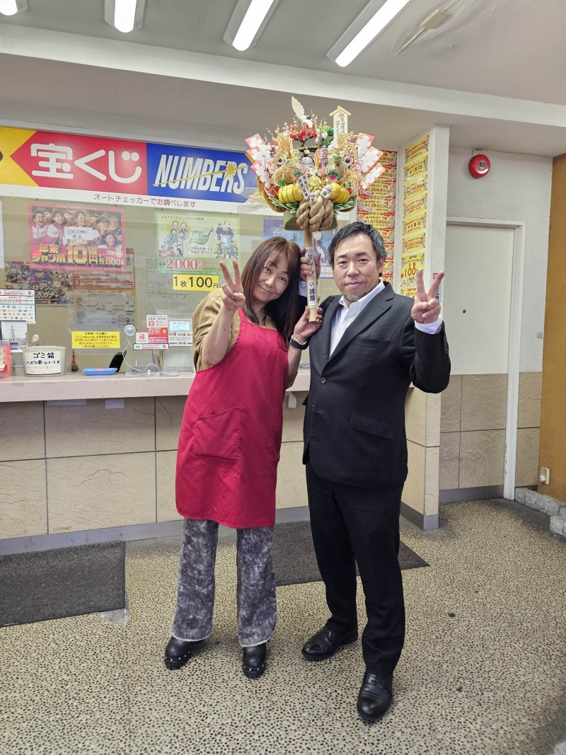 2025年8月15日抽せんのロト7で見事に1等約1億9千万円が出るなど、万博会期中に大当たりが出た売り場です。店長の根ケ山典宏さんは「私も今回の万博には合計5回行っていて、そのたびにパワーをもらっています。今回のロト1等も万博パワーのおかげ」と語っています。
