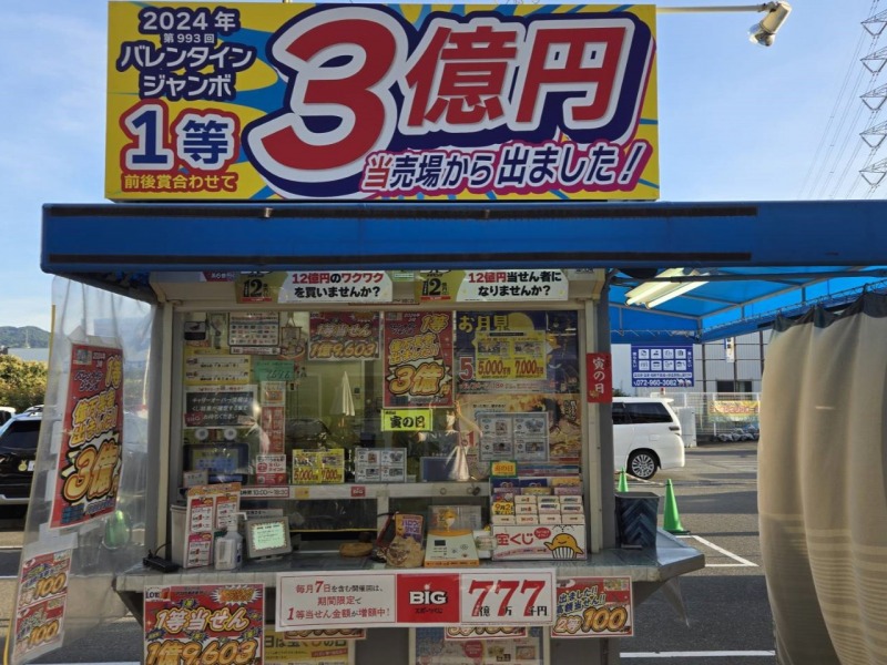 夢洲の万博会場に最寄りの売り場。2023年ロト6で1等4億7千万円、半年間にミニロト1等が2回など、個人商店としては奇跡の大当たりぶり。万博会場最寄りの象徴的立地で、関西万博の「開運の玄関口」を名乗れる売り場です。