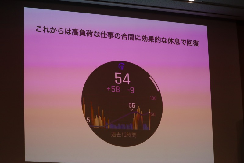 「Garminの睡眠計測精度はウォッチの中で1位ですし、強いストレスを察知すると自動で教えてくれます」と、Garminのデバイスが睡眠と回復に大いに役立つことも紹介した。