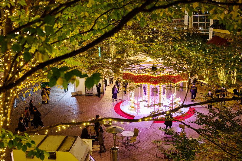 こちらもクリスマスまでのイベントは終了しましたが、イルミネーション「光の散歩道」は継続中。ゴールドの上品な光が訪れる人々をあたたかく迎え入れ、歩くたびにきらめく空間を提供しています。