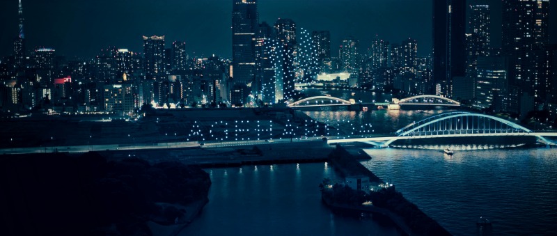 「LIGHTDANCe」は、ドローンが音楽とシンクロしながら舞い、空間に映し出すヒカリの奇跡のようなドローンショー。大都会でありながら東京湾に面した、リゾート感あふれる竹芝の一夜にさらなる彩りを添える新感覚のエンターテインメントです。