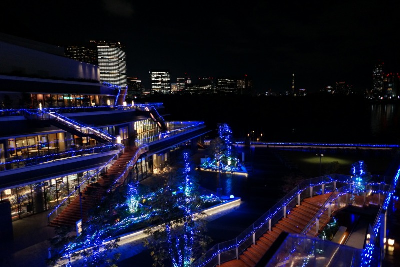 ウォーターズ竹芝では10月24日17:00より、イルミネーションの点灯を実施。シアター棟とタワー棟の手すりや階段、海側の手すりに青のイルミネーションを施し、光の演出で来場者を迎えます。少し肌寒くなる冬の入り口に、心地よい海風に吹かれながら、幻想的な青の景色を楽しむことができます。