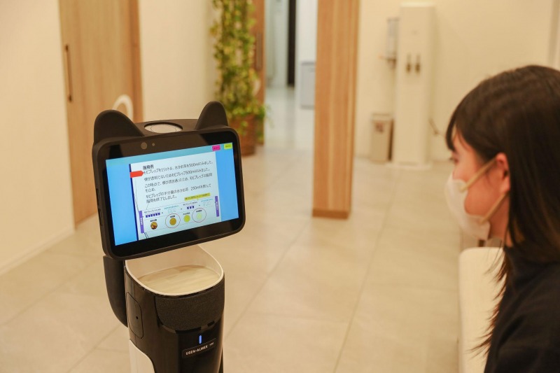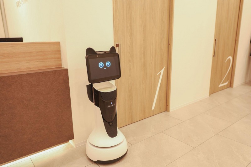 当院の大きな特徴の一つが、日本のクリニックで初となる自律走行型ロボット「ATOI」の導入です。現在は初診の問診補助や院内案内、次回予約の対応に加え、大腸カメラ前の下剤説明や同意書の取得、発熱している患者様の誘導などをロボットが担っています。