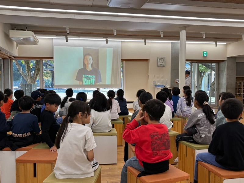 続いてグラウンドから多目的ホール「つながるーむ」へ移動。ここで同校の保護者代表として元体操選手の田中理恵さんがVTRで登場し、「子どもが履けなくなった靴を捨てる時、本当にもったいないなといつも思っていました。この企画は、私たち親の想いを叶えてくれる魔法です」と保護者目線で企画の意義を伝えました。