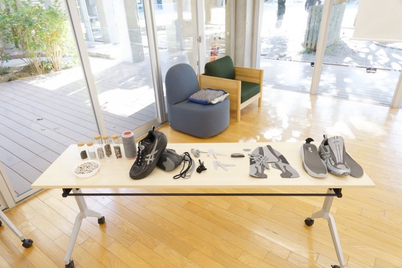 この日会場には、同じく廃棄予定のシューズを原料に用いたソファも。このソファはカリモク家具との協業で生まれたもので、シューズが「NEOCURVE」以外にリサイクルされた初めての事例です。村岡さんが「この座面のクッションには、シューズの底に使われている柔らかい素材がそのまま活かされています」と説明すると、子供たちは驚きながらもどこか納得もしている様子。実際にものが循環し生まれ変わった姿を見て、サーキュラーエコノミーについての理解を深めていました。