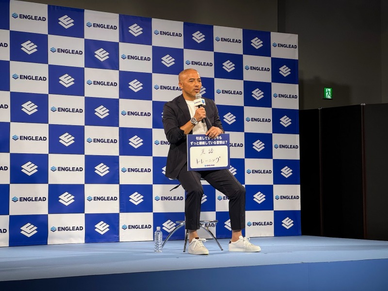 続いてイングリードの新アンバサダーに就任された小野伸二さんがゲストとして登場。小野さんは4年間イングリードで英語学習を継続している実際の受講生で、現役時代にチーム内の外国人選手や監督との橋渡し役になりたいという思いから英語学習をスタートしたそう。