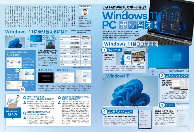 また、「Windows 11 PC乗り替え案内」では Windows 10のサポートが10月14日に終了となることを受け、 Windows 11へのアップグレード方法やPC買い替えのポイントをプロが解説。ビジネス向け、画像・動画編集向け、ゲーム向けなど、それぞれの用途に合わせたタイプ別オススメWindows 11マシンを紹介しています。