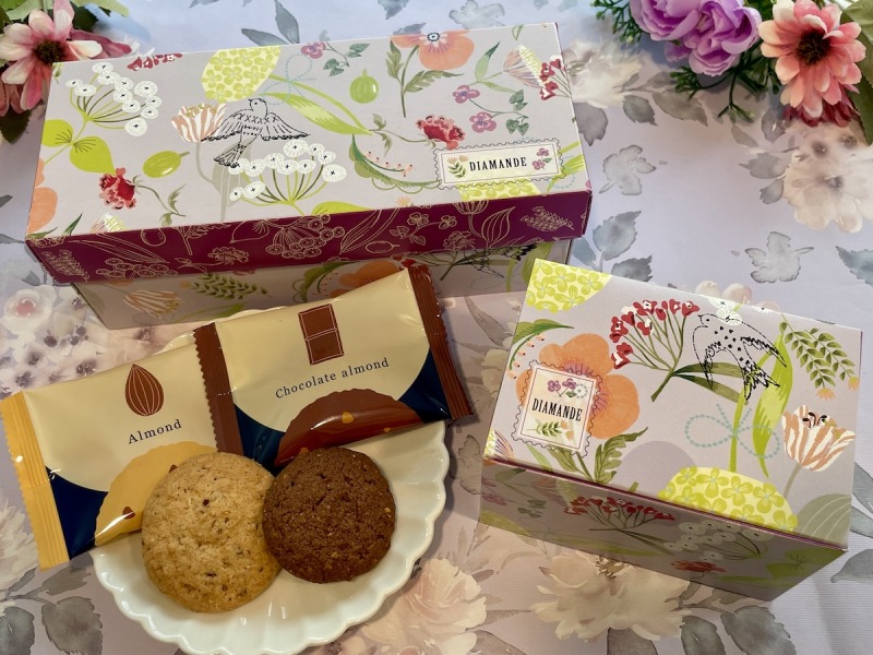 サクサク軽い食感とアーモンドの風味が豊かなディアマンド。沖縄県産のさとうきびの原料糖のみで作られた「本和香糖(ほんわかとう)」を使用しており、口当たり良くまろやかな甘さのクッキーです。味はアーモンド、チョコアーモンドの2種類。アーモンドの柔らかな香りと優しい甘さが広がります。