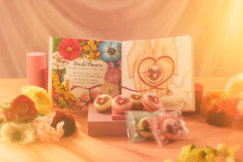 今回のデザインは、「感謝」や「門出」などの意味を持つ花がデザインされていて、これからの卒業シーズンや新生活に向けたギフトとしても最適です。心温まるアートに触れながらスイーツが楽しめる『ピースフルマカロン』で“ありがとう”を伝えてみてはいかがでしょうか。