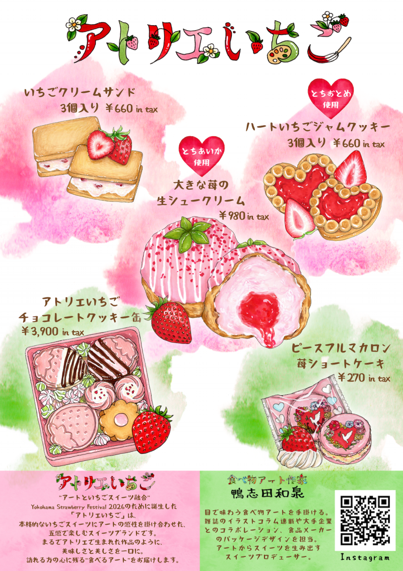 2026年2月5日(木)~3月1日(日)まで、横浜の赤レンガ倉庫で開催されている「ヨコハマストロベリーフェスティバル2026」に、鴨志田さんがプロデュースしたいちごスイーツ店「アトリエいちご~クッキーと生シュークリームの店」が出店しています。