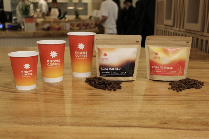 KNOWS COFFEEのコーヒーは、“ハワイコナ”を100%使用。上品な酸味のある「ウォッシュド製法」と新しく販売するフルーティーな味わいの「ナチュラル製法」の2種類の製法から選べる。ドリンクは、KNOWSラテやハワイアンソルトキャラメルマキアート、アサイーミルクスムージー、アルコールなど幅広く提供する。