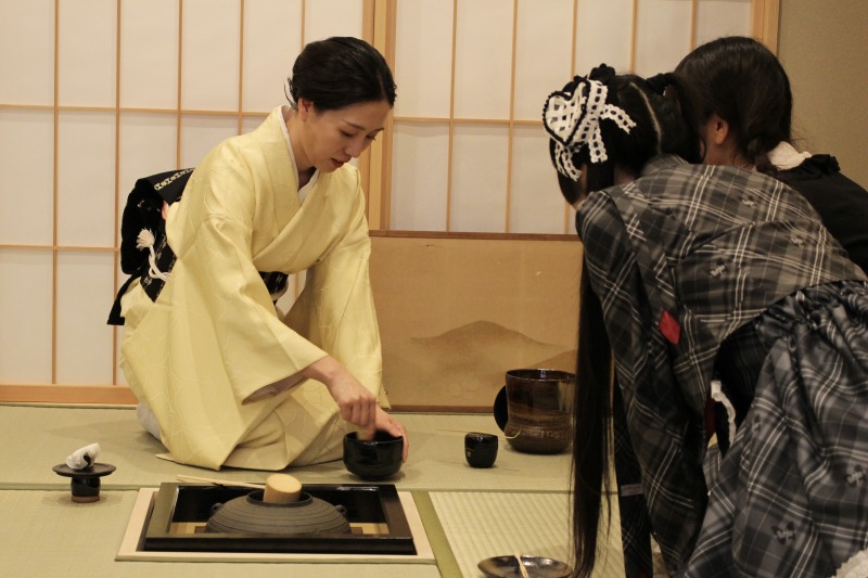 本格的な茶道体験は、茶道家によるお点前拝見、盆点前体験ができ、和菓子を楽しみながら自分で点てた抹茶を飲む体験が可能。(要予約)予約無しの体験プログラムでは、盆点前体験や誰でも簡単にできる抹茶体験ができる。