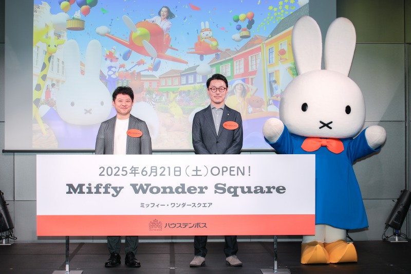 長崎県佐世保市のテーマパーク『ハウステンボス』は、オランダ生まれの人気キャラクター・ミッフィーをテーマにした新エリア『ミッフィー・ワンダースクエア』(Miffy Wonder Square)を新設し、2025年6月21日にオープンする。秋には世界初の絵本体験型アトラクションの登場も予定していると発表した。