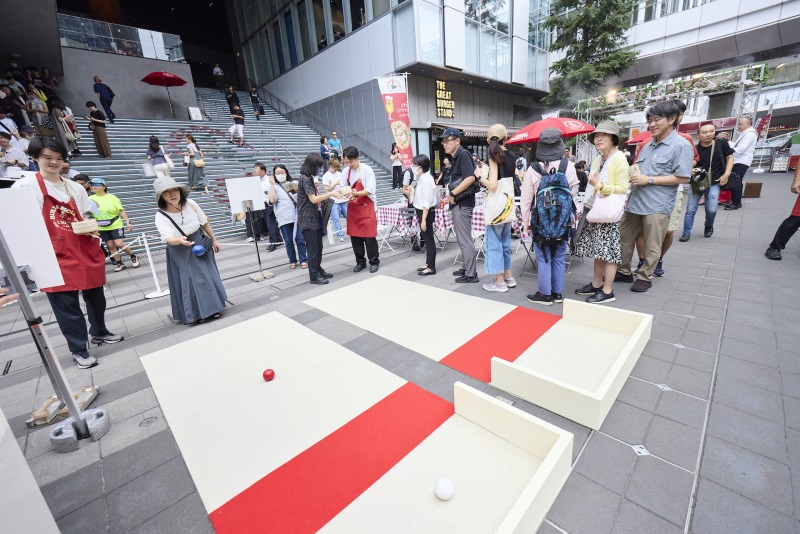 イタリア生まれのスポーツ「ボッチャ」をミニ版で体験できるコーナーも。ボールを投げて赤いラインに近づけるゲームは、友人同士で盛り上がれるアクティビティ。1人3球のチャンスで赤いラインに投げ入れると、ハイスコア達成者にはボトルオープナーをプレゼントされるのも、嬉しいポイントです。