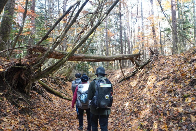 歩き始めると意外に木々が伐採された人が通れる道のようなものがある。それに沿って歩けば初心者でも迷いづらい印象だ。