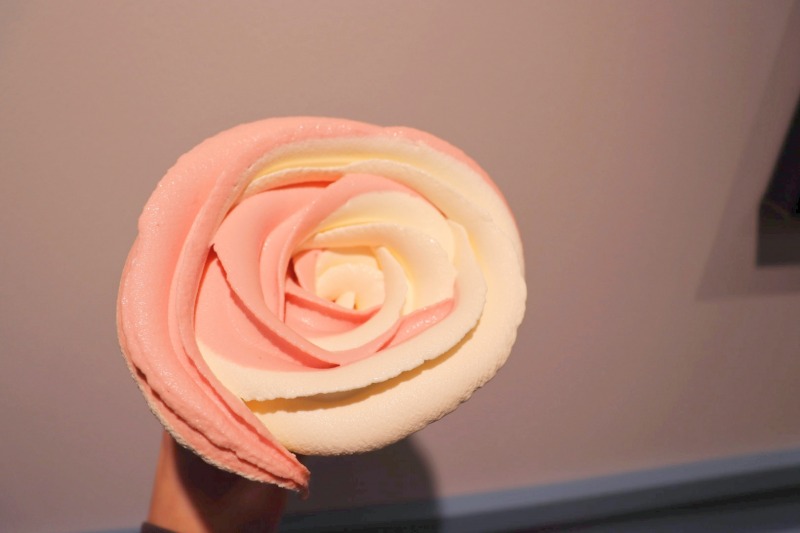 スイーツメニューも充実しており、中でも注目は英国の国花・薔薇をモチーフにした「ROSE・ソフトクリーム」。コーンの上に花びらが咲き乱れるソフトクリームは、ずっしりとボリュームのある一品。ミックスでは苺の濃厚な甘味とバニラの両方が楽しめる。苺・バニラ・ミックスの3種類で各500円(税込)。