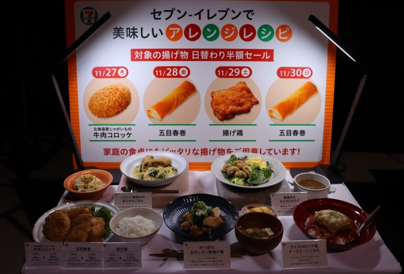 同時に、牛肉コロッケ、五目春巻、揚げ鶏といった人気のおかず系アイテムを対象に、日替わりで半額販売するキャンペーンも実施した。セブン‐イレブンが揚げ物を対象に大規模なセールを行うのは今回が初めてで、ブラックフライデー期間の目玉企画となる。11月29日には揚げ鶏が税込111円で提供されるなど、日々異なる商品をお得に楽しめる内容だ。
