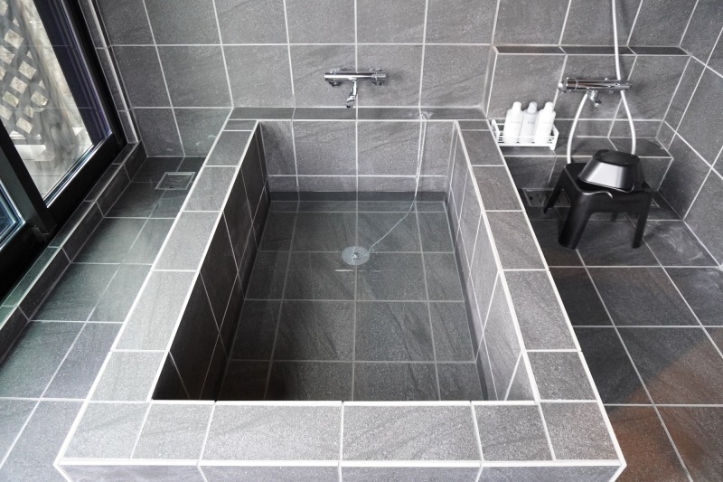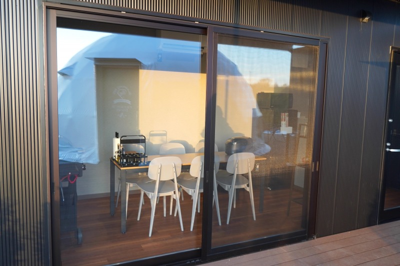 ドーム型のグランピング施設だと、トイレが共同だったり、遠かったりと不便な時もあるが、この施設はすぐ横にキッチンやダイニング、そしてバスタブ付きのお風呂、シャワールーム、トイレも完備。全てが客室エリアで完結するのも過ごしやすいポイントになっている。
