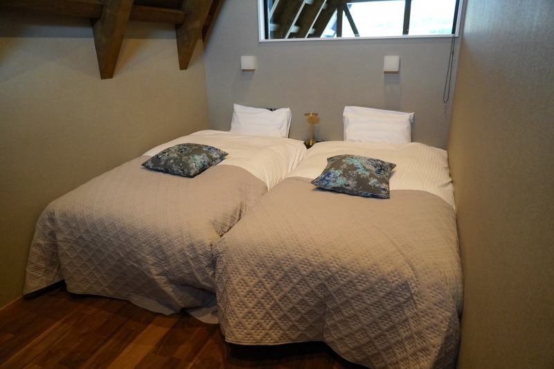 寝室が1階と2階にわかれているのでグループや2世帯利用にもおすすめだ。セミダブルベッドが4台で定員は6名となっている。