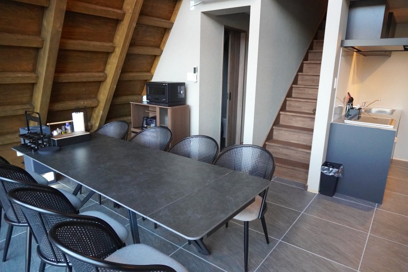 食事は客室のダイニングにBBQグリルが用意されていて、地元食材を使った贅沢なBBQ2種類と、冬季はお部屋でゆっくりと味わえるすき焼きコースから選べる。すき焼きのお肉は「甲州牛」や「甲州信玄豚」を使用し、贅沢な味わいだ。