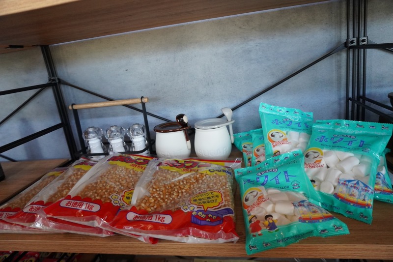 ここには引き立てコーヒーが味わえるキットやポップコーンなどもあって、こちらもインクルーシブ。