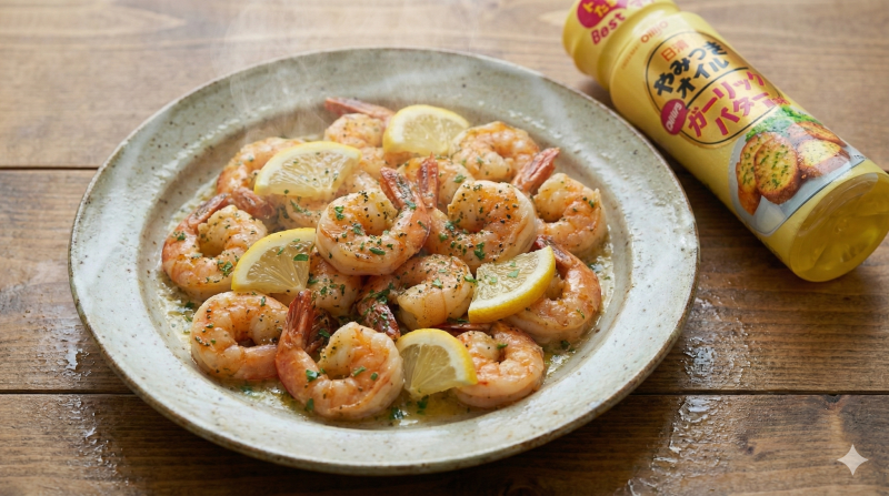 焼いたエビに「日清やみつきオイル ガーリックバター風味」をかけるだけで、パーティーの定番フィンガーフード、ガーリックシュリンプがすぐに完成! ガーリックバター風味は、食欲を刺激するバターとガーリックの濃厚でコクのある風味があり、さらにスパイスの隠し味がオイルにとじ込めてありますよ。