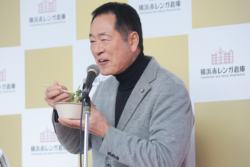 プレゼンターを務めた中畑清は、登場して早々「こんにちは!」と会場に呼びかけると、「反応してよ!もう1回行ってみよう!」と畳みかけ、会場の空気を温めてみせた。続けて「横浜に来たらベイスターズを思い出します。あの弱かったベイスターズを私が変えたな!って」と振り返り、さらに同会場の思い入れとして「現役時代は歌手活動をしていて、赤レンガでジャケット写真を撮った」というエピソードを披露。「『港』って曲で、レインコートを着て襟を立ててね。でも、発売して3か月で廃盤になりました(笑)」と、笑いの締めまで抜かりなかった。