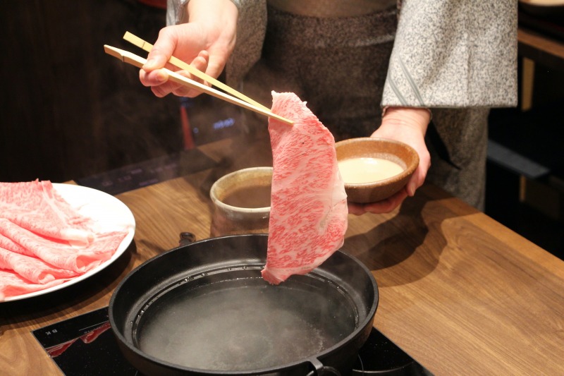 まず驚かされるのは、肉のクオリティだ。バイヤーが全国の産地から「木曽路スペック」で目利きし、各店舗で料理長が1枚1枚、脂の質や断面の美しさを確認しながらスライスする。この徹底した品質管理が、全国126店舗で維持されているというから驚きだ。