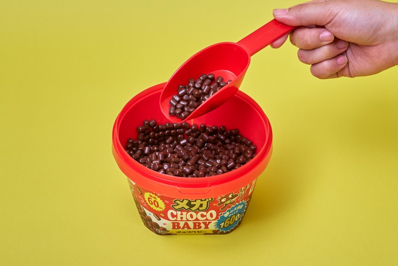 本製品は大好きなチョコベビーを豪快にすくって食べられる、ユニークな体験型商品。“みんなでわいわいシェア”してチョコベビーパーティーをするもよし、“一人で夢の大人食い”するもよし。いろいろなものにトッピングして楽しむもよし。バケツが空になったら、いつものチョコベビーを買って継ぎ足し補充し、いつまでもいつまでも、“無限チョコベビー”を体験することが可能。SNS映え間違いなしのインパクトある限定商品になっています。